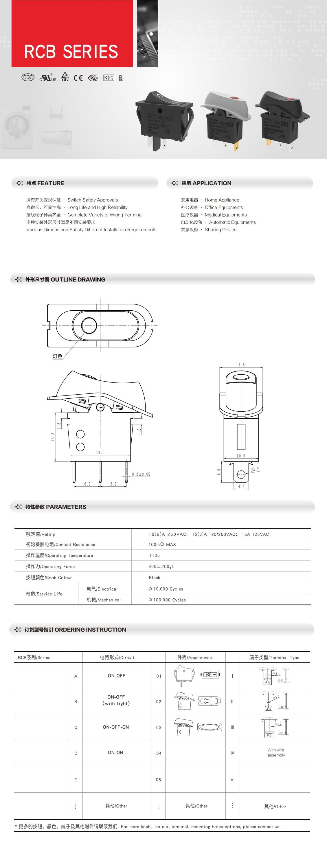 RCB系列 船型开关 翘板开关2/3档 多规格按钮端子