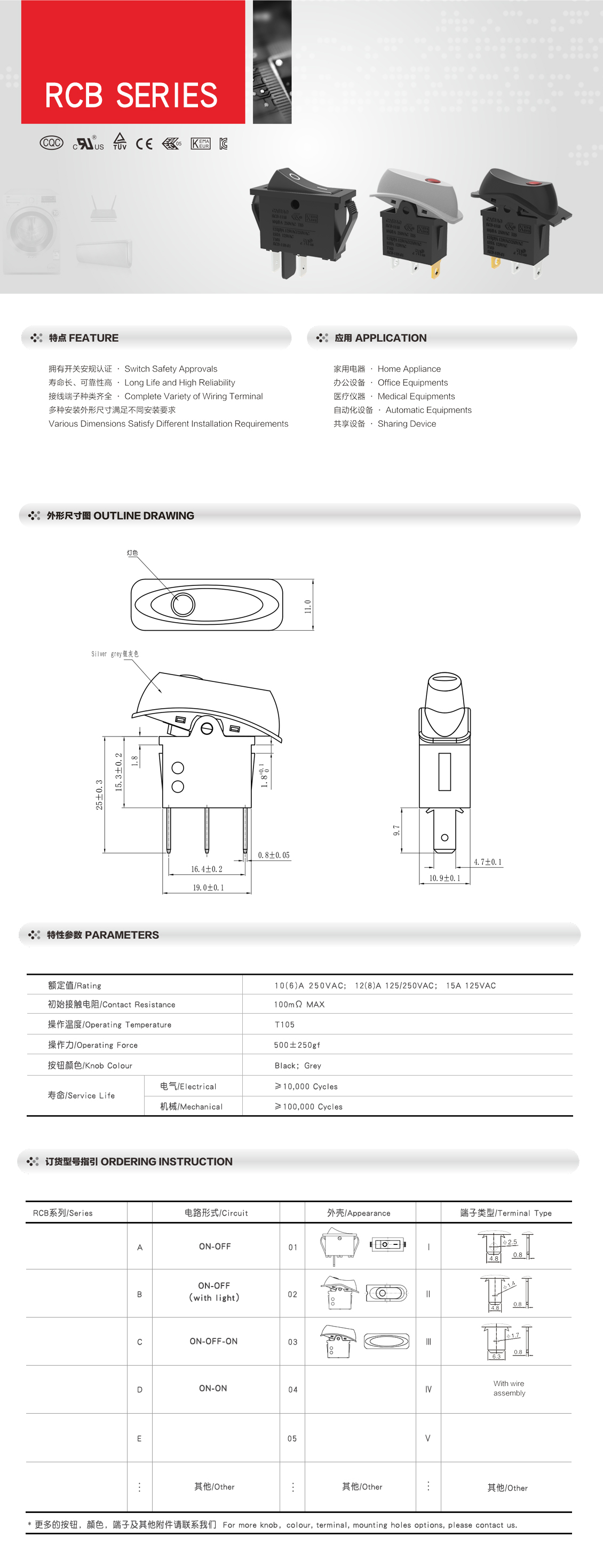 RCB系列 船型开关 翘板开关可带猫眼灯 多规格按钮端子