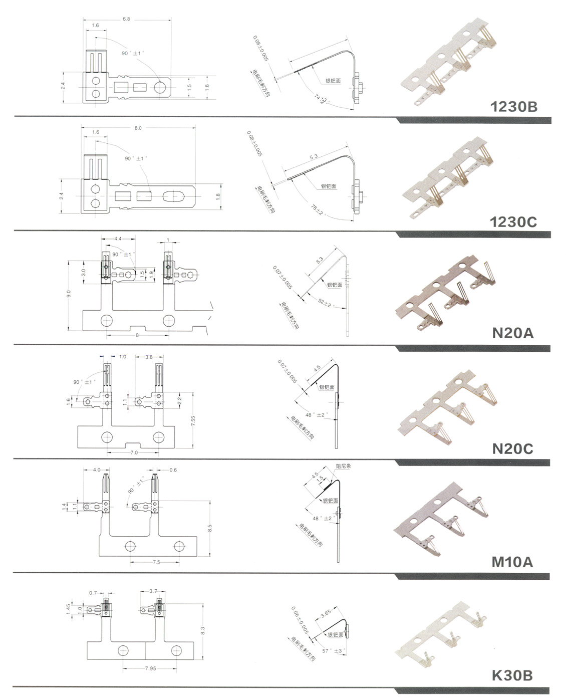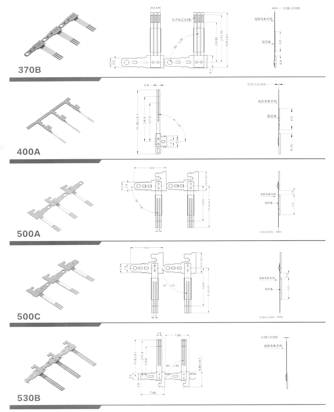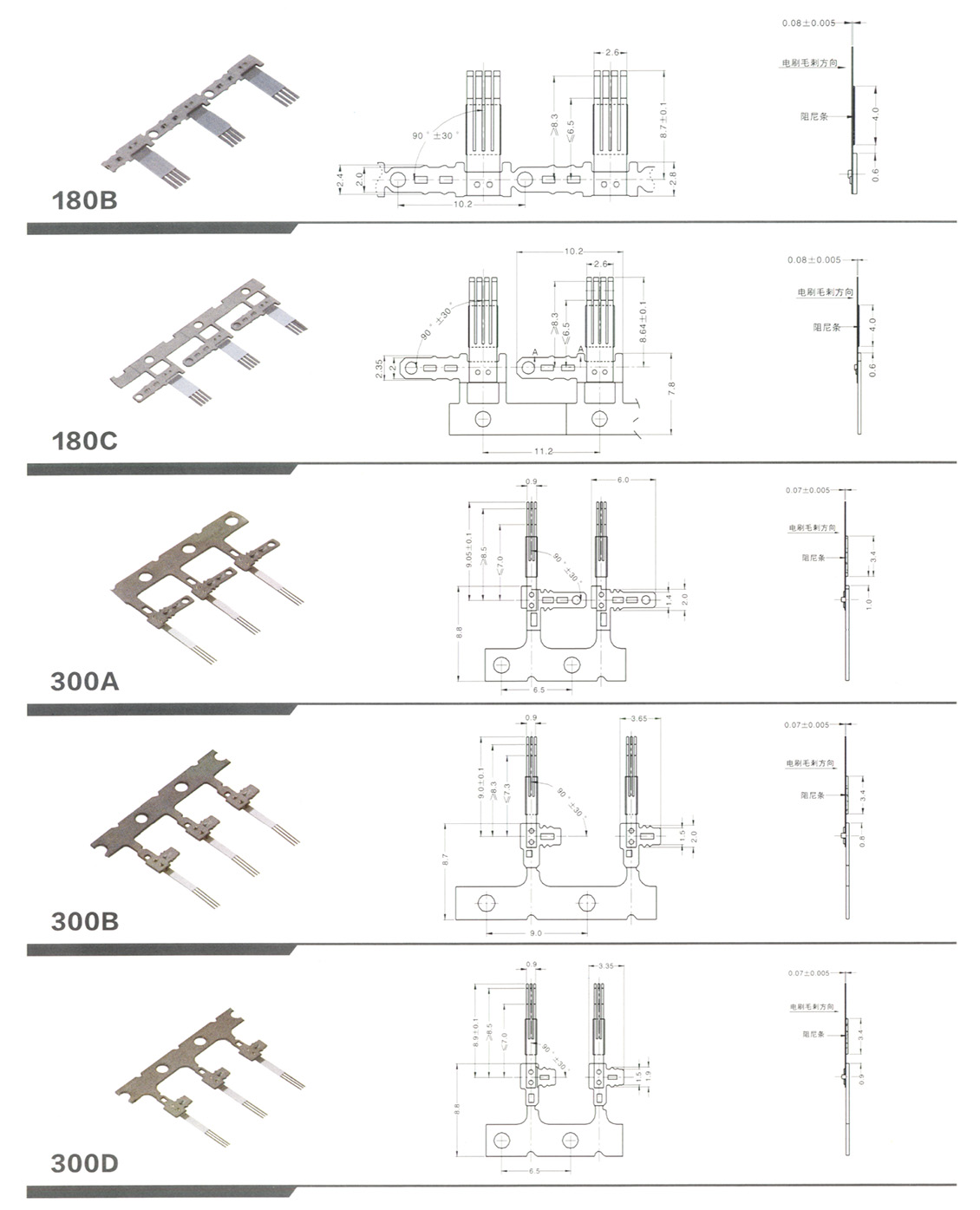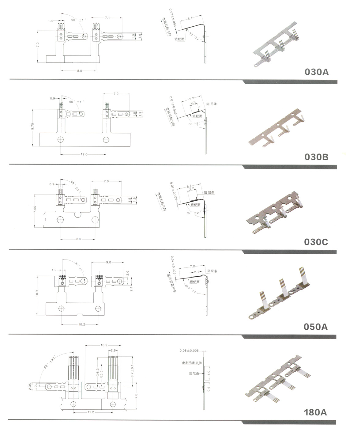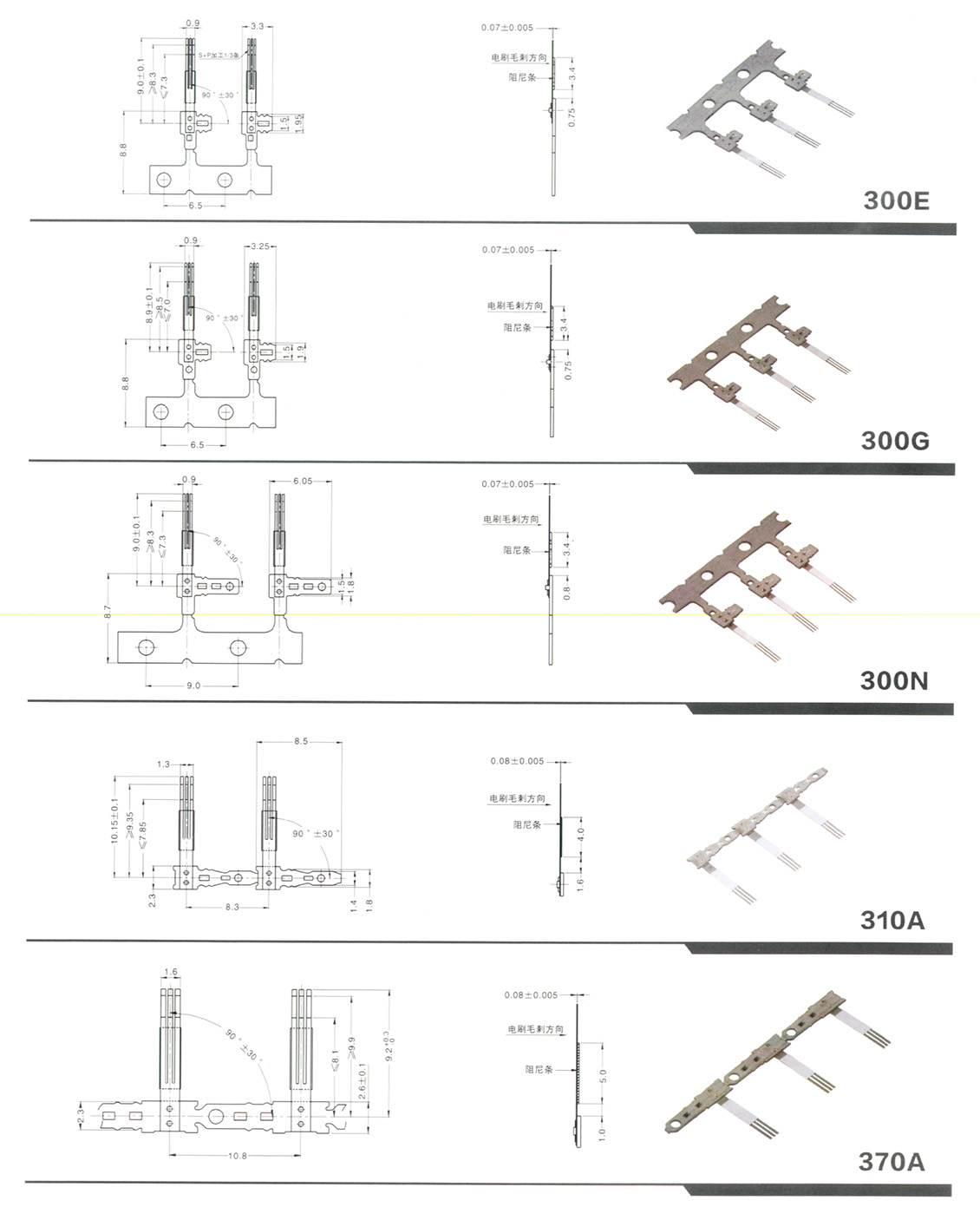 铆合电刷030、050、180、300、310、370、400、500、530、1230、N20、M10、K30系列